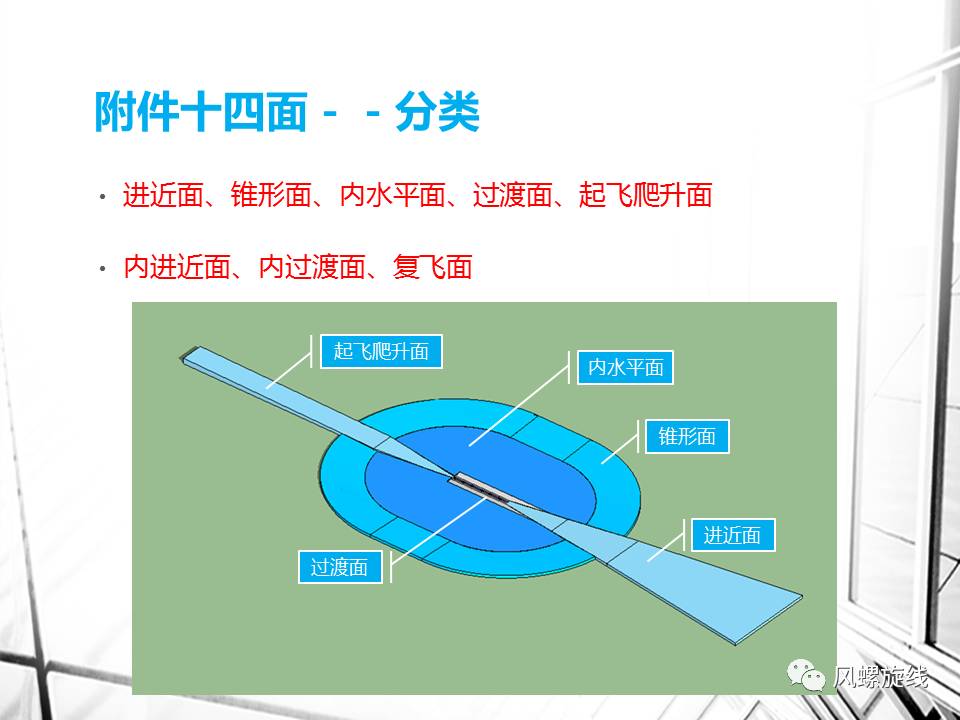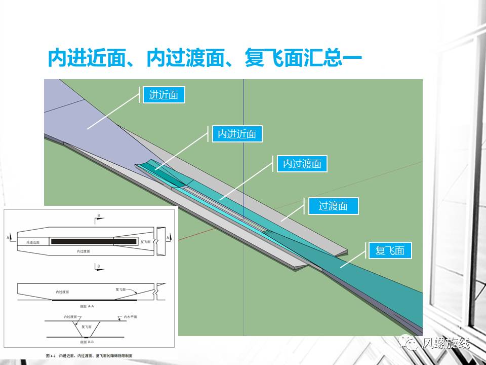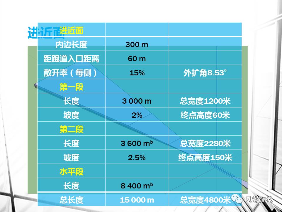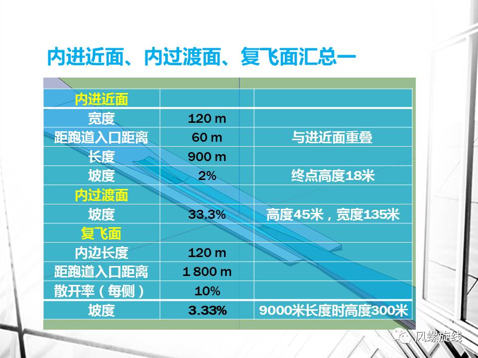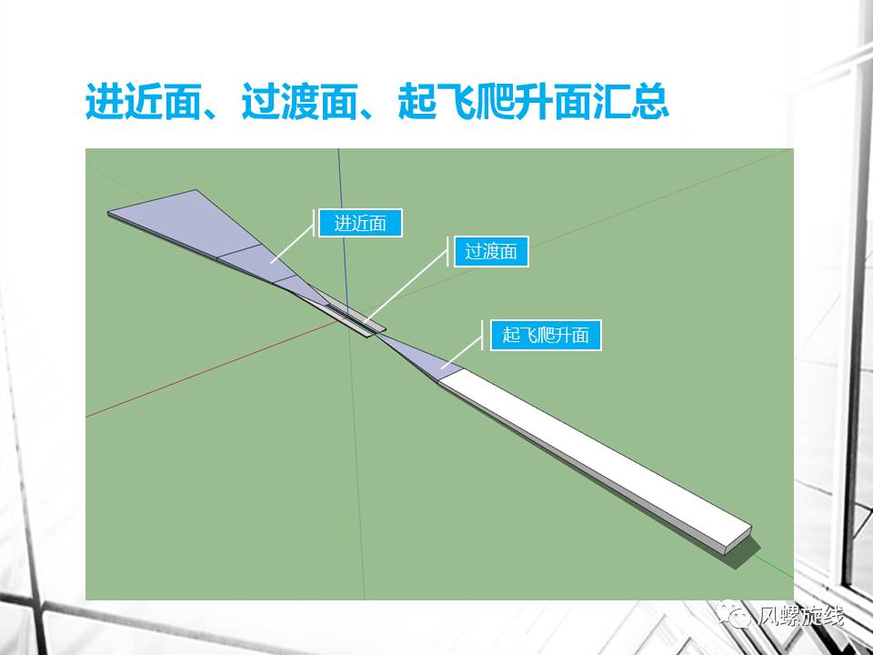 诚意满满的附件十四面课件,全文需耗流量大约5M。图例中采用的是I类精密跑道基准代码3、4的限制面参数,用SketchUp绘制而成。