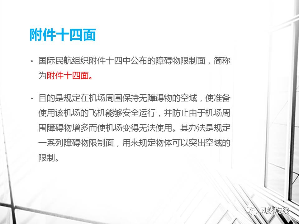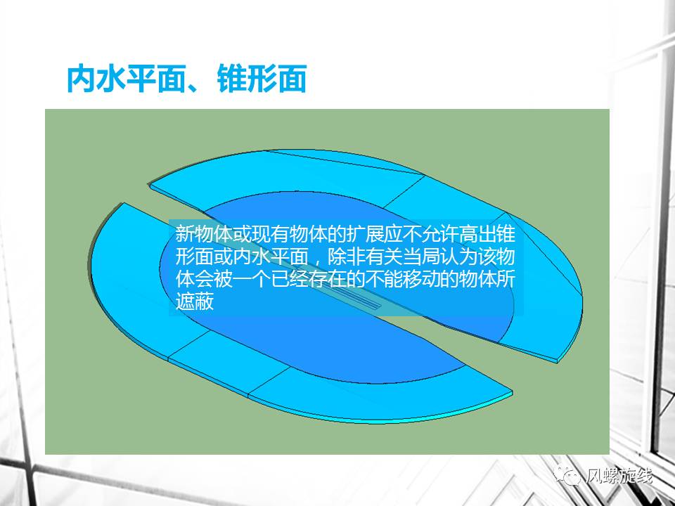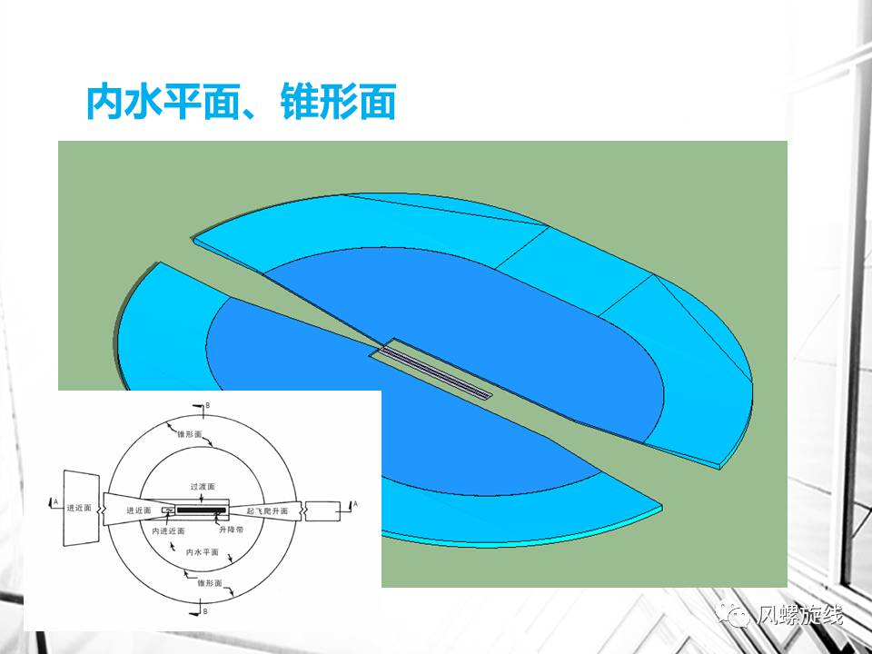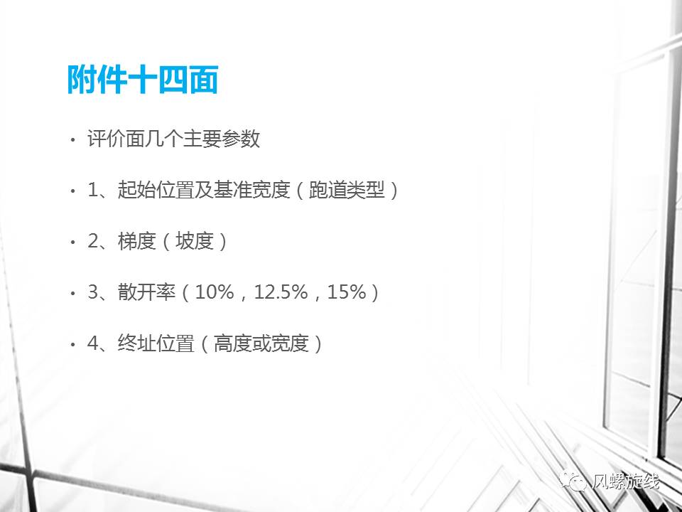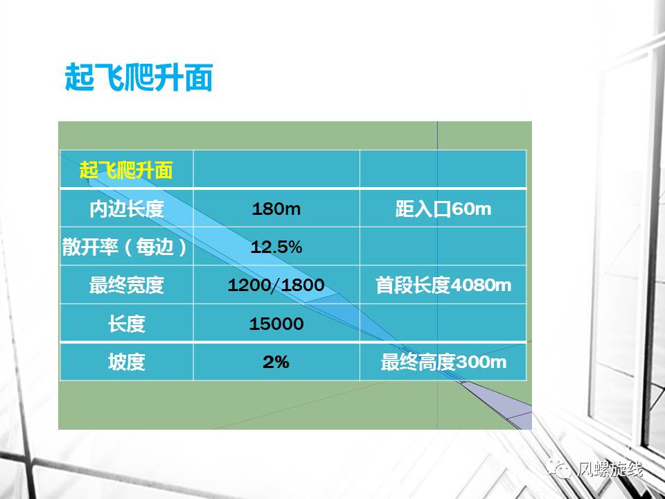 诚意满满的附件十四面课件,全文需耗流量大约5M。图例中采用的是I类精密跑道基准代码3、4的限制面参数,用SketchUp绘制而成。