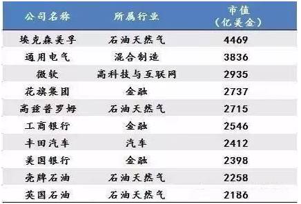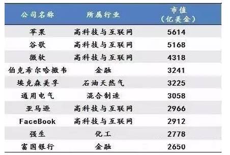 十年前,全球市值前10名主要还集中在能源、金融等传统产业。