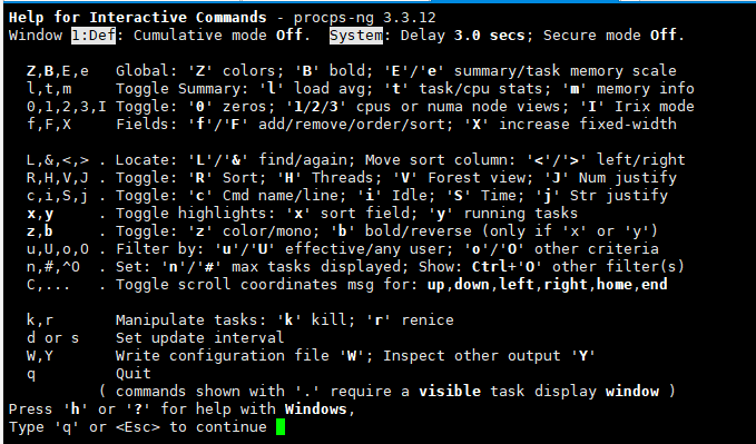 Linux中的top命令显示系统上正在运行的进程。它是系统管理员最重要的工具之一。被广泛用于监视服务器的负载,top命令是一个交互命令。在运行top的时候还可以运行很多命令。