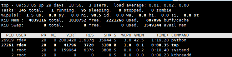1、数据占用的内存。如果top没有显示,按f键可以显示出来。