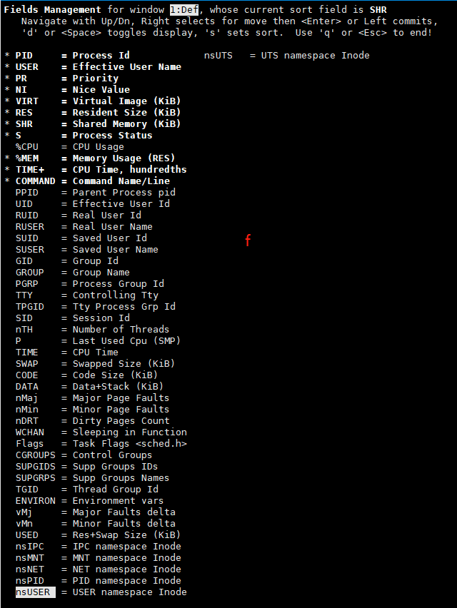 还有许多在默认情况下不会显示的输出,它们可以显示进程的页错误、有效组和组ID和其他更多的信息。