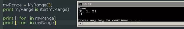 在上面的例子中,myRange这个对象就是一个可迭代对象,同时它本身也是一个迭代器对象。