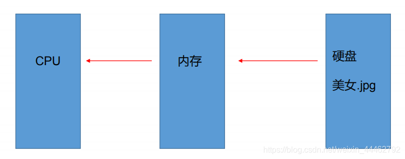 文件在电脑中都先从硬盘中加载到内存中,然后由CPU去内存中去读取,如下图所示