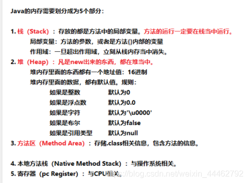 内存概述:内存是计算机中的重要原件,临时存储区域,作用是运行程序。我们编写的程序是存放在硬盘中的,在硬盘中的程序是不会运行的,必须放进内存中才能运行,运行完毕后会清空内存。 Java虚拟机要运行程序,必须要对内存进行空间的分配和管理。
