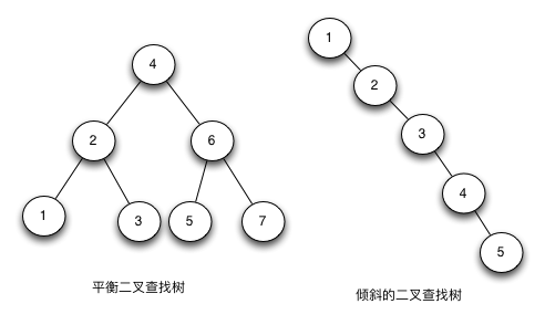 二叉查找树(Binary Search Tree,简称BST)是一棵二叉树,它的左子节点的值比父节点的值要小,右节点的值要比父节点的值大。它的高度决定了它的查找效率。