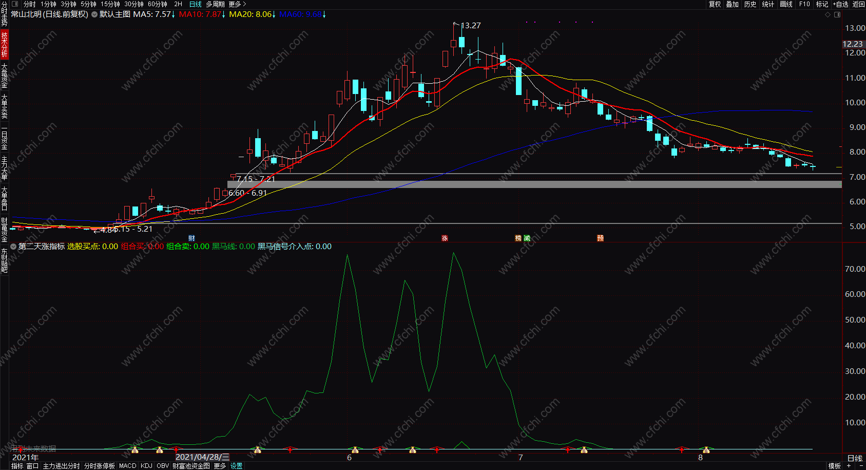 黑马线:IF(VAR1B>0.1,VAR1C,0)*1;