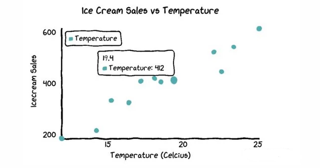 为了绘制散点图,我将创建一个新的数据集。这次我们用到的是温度和冰淇淋销量数据。