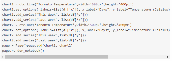 目前,该库支持五种图表--条形图、线形图、饼图、雷达图和散点图。它还支持图表的组合。
