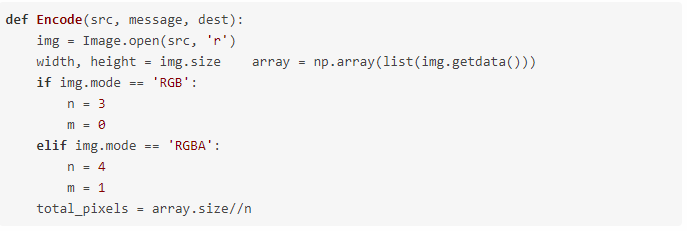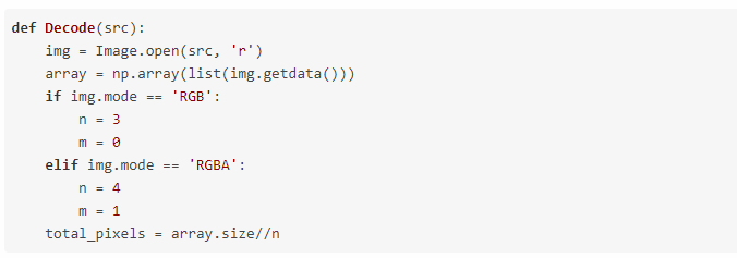 首先,编写代码,将源图像转换成一个NumPy像素阵列,并存储图像的大小。检查图像的模式是RGB还是RGBA,然后设置n的值。还需计算像素的总数。