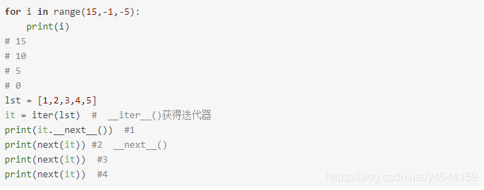 - next() 迭代器向下执行一次, 内部实际使用了__ next__()方法返回迭代器的下一个项目