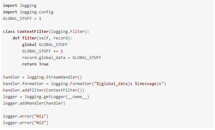 用户可以声明他们自己的过滤器作为对象,使用 filter 方法获取日志记录作为输入,反馈 True / False 作为输出。