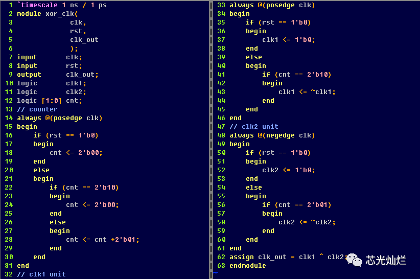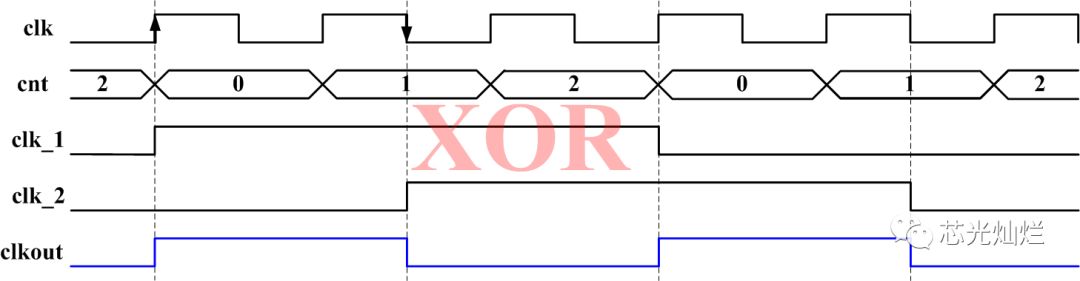 第四步:clk1和clk2异或,即可得到输出时钟clk_out;