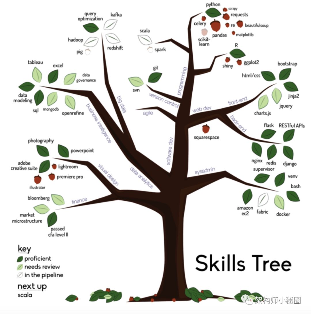 另外,人的技能树,其实也是“犬牙交错、参差不齐”的。什么意思?技术领域非常的广阔,你真的没办法每个领域都很精通,实际上是这个做的多,懂的多,那个用的少,知道的少。这个时候,应看具体知识领域,是哪一类。它是否需要复杂的、难度较高的背景。门槛高的技术,需要的配套技能多得多,比如AI、机器学习。而一般产品应用领域则不然,了解核心概念、设计意图,看着手册、最佳实践,也就能上手了。这个暂时不会,实际无关紧要的,工作一段学的认真点就会了。但是门槛高的领域,就需要很长时间的学习了。这是本质的差别。