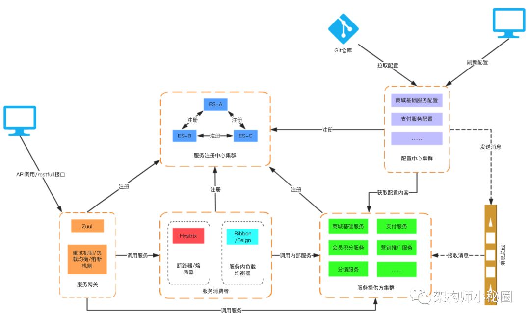 微服务有哪些要点呢?先看下图是 SpringCloud 的整个生态。