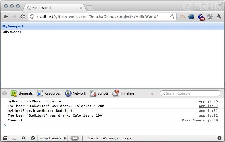 一般我们在学习一种新语言或者技术时,都会编写一个 Hello World 程序来快速的了解语言的开发工作。在这个例子中,我们在 Hello world 基础上增加一些东西,我们添加一个 Viewport 组件、Sencha classpathing ,一个定制的超类和之类,以及一个 mixin 类的实例。