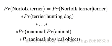 为了计算某一结点的绝对概率,只需要对这一结点到根节点的整条路径的所有概率进行相乘。所以比如你想知道一个图片是否是Norfolk terrier的概率,则进行如下计算:
