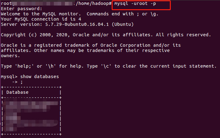 mysql -uroot -p