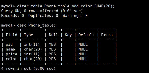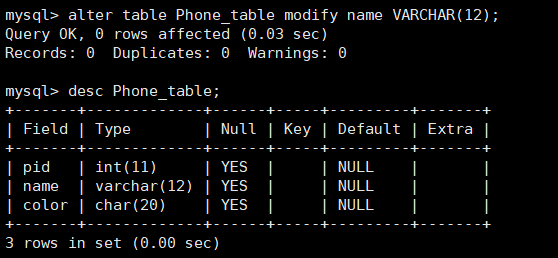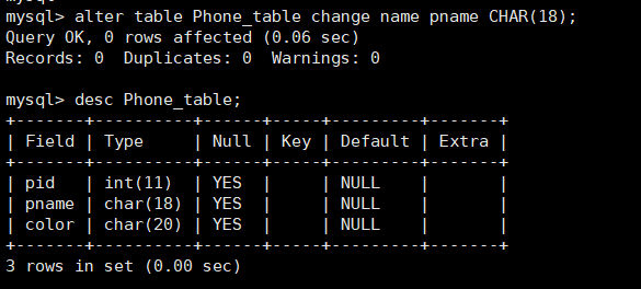 现在,将表的 name 改成了 pname ,同时修改了 pname 的数据类型。