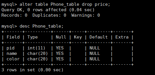 使用 alter table 表名 drop 字段名; 删除一个表中已存在的字段。