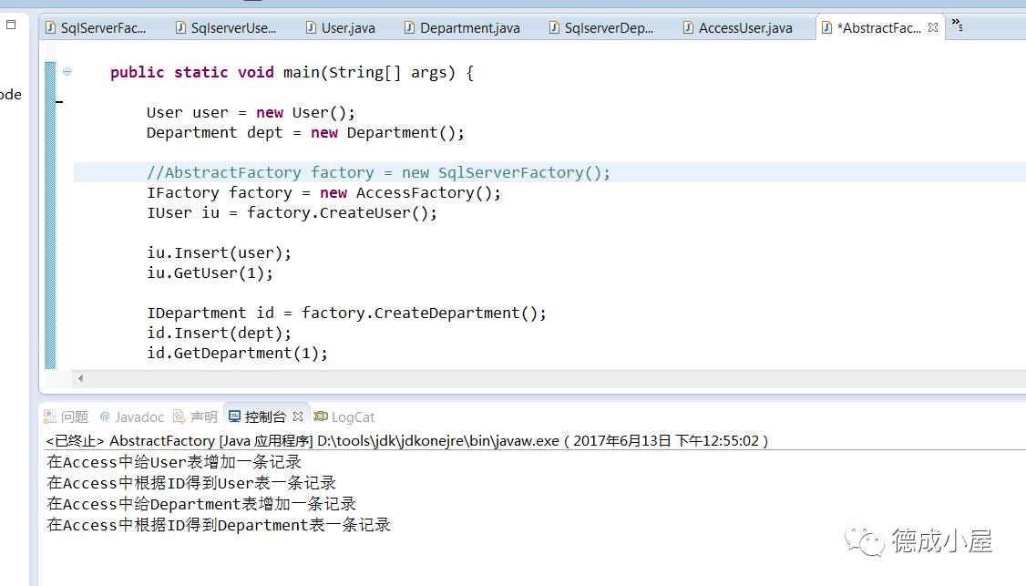 IDepartment id = factory.CreateDepartment();//此时与具体的数据库访问对象解除了依赖