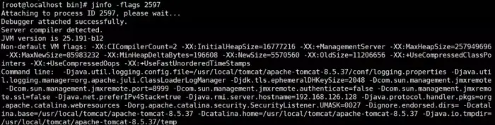 如果要查看一个运行中的JVM相关参数的信息,可以使用jinfo,不过要先知道Java进程的ID。
