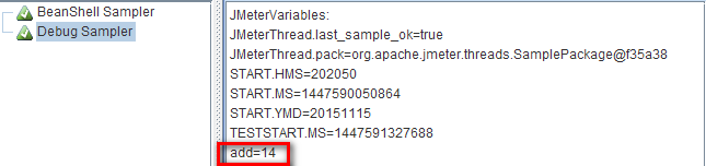 - Debug sampler-1中显示:hello=world,jmeter=111111