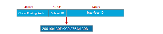 (3)在MAC地址向EUI-64格式的转换过程:在MAC地址的前24位和后24位之间插入了16比特的FFFE,并将U/L位的值从0变成了1,这样就生成了一个64比特的接口ID,且接口ID的值全局唯一。接口ID和接口前缀一起组成接口地址。