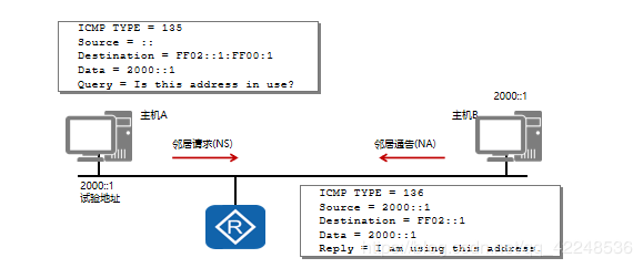网络节点向相连的路由器发送RS,请求地址前缀信息。路由器通过发送路由器通告RA,回复地址前缀信息。