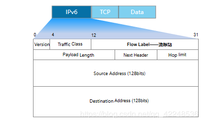 Traffic Class:流类别,长度为8bit,它等同于IPv4报头中的TOS字段,表示IPv6数据报文的类或优先级,主要应用于QoS。 Flow Label:流标签,长度为20bit,它用于区分实时流量。流可以理解为特定应用或进程的来自某一源地址发往一个或多个目的地址的连续单播、组播或任播报文。IPv6中的流标签字段、源地址字段和目的地址字段一起为特定数据流指定了网络中的转发路径。这样,报文在IP网络中传输时会保持原有的顺序,提高了处理效率。随着三网合一的发展趋势,IP网络不仅要求能够传输传统的数据报文,还需要能够传输语音、视频等报文。这种情况下,流标签字段的作用就显得更加重要。
