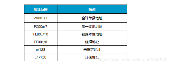 7、IPv6地址分类:分为单播地址、任播地址、组播地址三种类型。