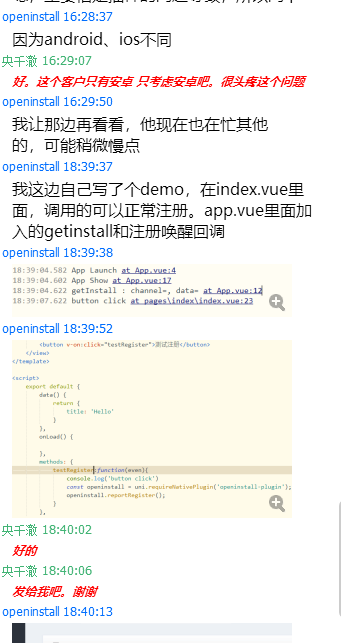 这个是与openinstall官方成员一起解决掉的 bug问题,因为原生SDK插件支持带来的相关问题。