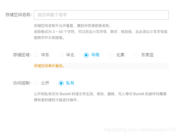 创建储存空间的时候要选择地区且不可修改,所以选择创建了 需要对应起来。