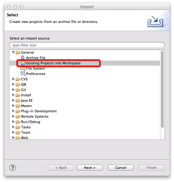 (5)导入项目,导入已经存在的项目到工作空间中。
