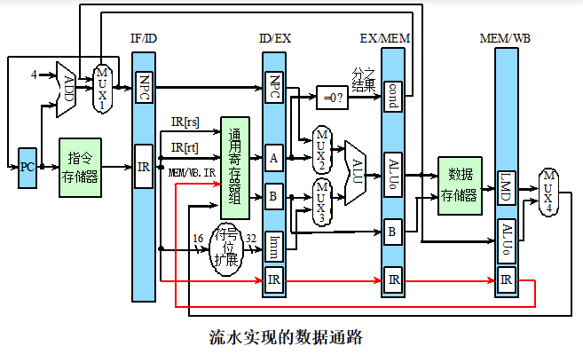 例如:ID段与EX段之间的流水寄存器用ID/EX表示