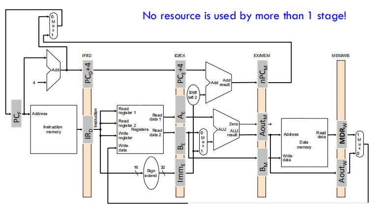 这样处理的好处是在流水线运作时,不会产生一个周期里既对指令访存又对数据的访存的访存冲突。