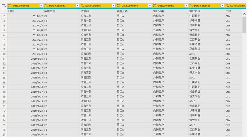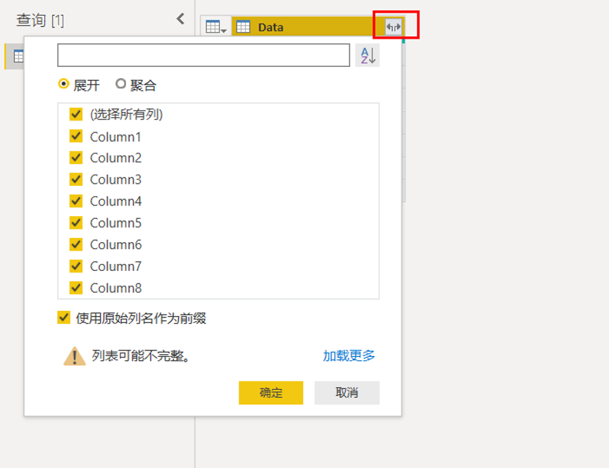 本次实例主要为了完成数据合并,因此我们删除上中部分列,只需要保存“Data”列。