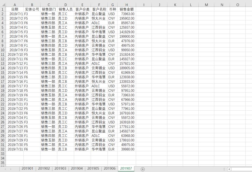 使用“从文件夹中获取数据”时,通过Power Query的图形界面已内置了从一个文件夹合并多个文件的功能。但是,如果您有一个Excel文件,包含具有相同结构的多个工作表,则不能使用该功能进行合并。本篇文章将介绍一个很小但有用的技巧,可以动态地从多个工作表中获取并合并数据。数据源如下图: