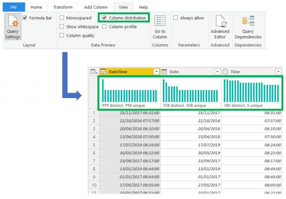 要识别高基数列,我们可以使用Power Query中提供的“列分布”之类的功能,甚至可以更好地使用我们建议使用VertiPaq分析器来识别高基数列。重要说明,如果您在Power BI中使用列分配功能,则除非更改,否则这仅适用于前1000行。