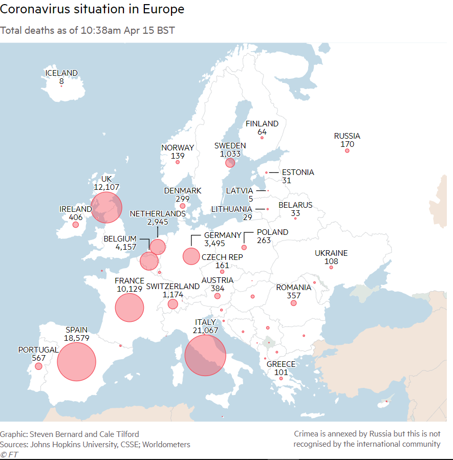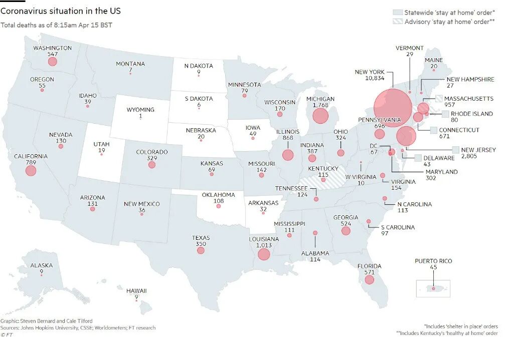 4月7日:现在,地图显示的是死亡总数,而不是确诊病例。
