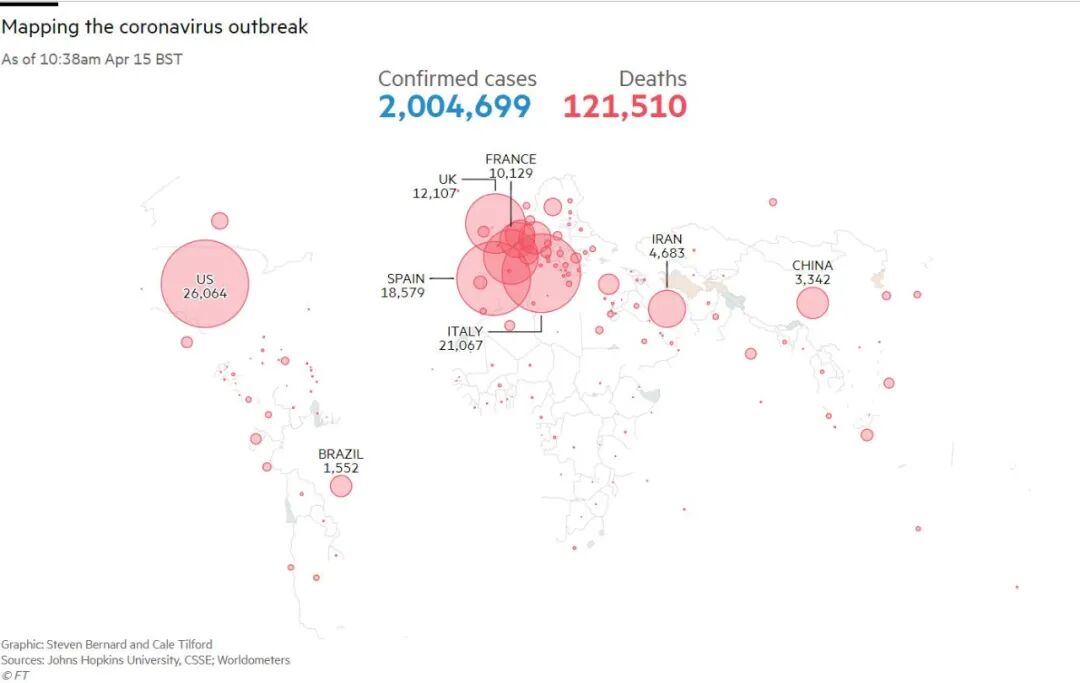 冠状病毒爆发的人为代价不断增加,全球确诊病例超过200万,已知有121,000多人死于这种疾病。
