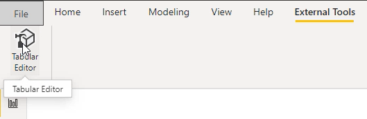 下载表格格式编辑器后,您可以在Power BI Desktop中打开报表并从功能区的“外部工具”选项卡启动表格格式编辑器:
