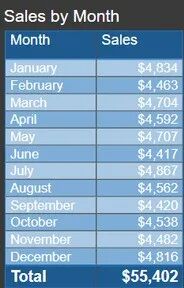 让我们举一个非常简单的示例来说明用户对要显示的行数的控制。在下面显示的图像中,我们得到了一个只有2列的简单数据集。一个是MONTH列,另一个是每月产生的TOTAL SALES。