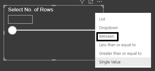 我们一般会希望我们的参数接受最小值和最大值。因此,就像Power BI中的普通切片器一样,我们可以选择 BETWEEN选项以按我们所希望的方式进行设计。