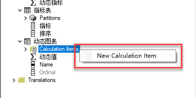 在“动态图表”中,创建新的计算项。右键单击“calculation items”,然后新建。