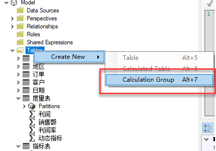 右键单击Tables文件夹,单击“新建”,然后单击“计算组”。