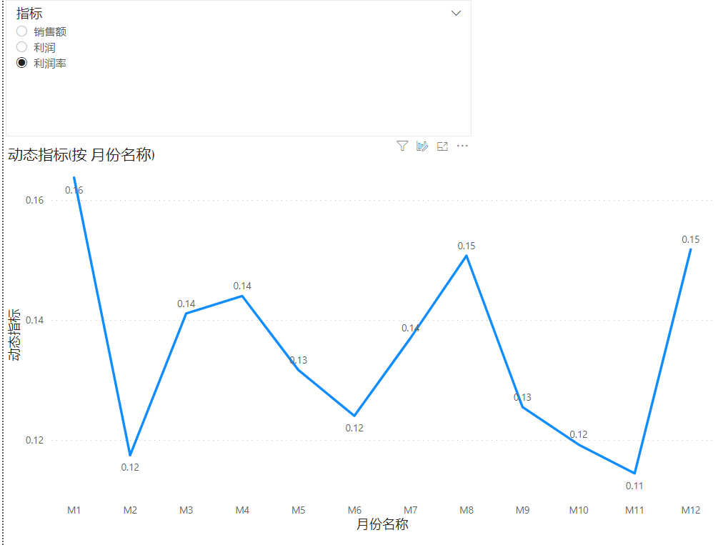 例如,如果你具有以下三种要求不同格式的度量,则图表可以根据选择显示值,但是轴格式不会响应于不同度量而改变。