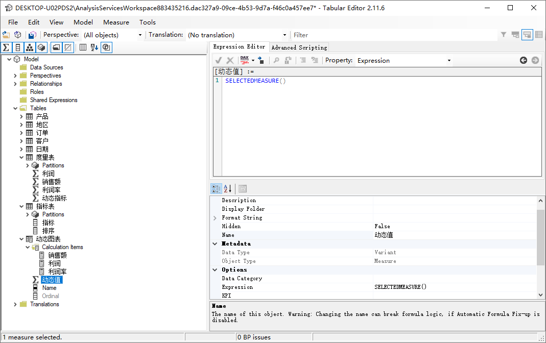 • 为度量“动态值”添加特殊的DAX函数SELECTEDMEASURE(),如下所示。