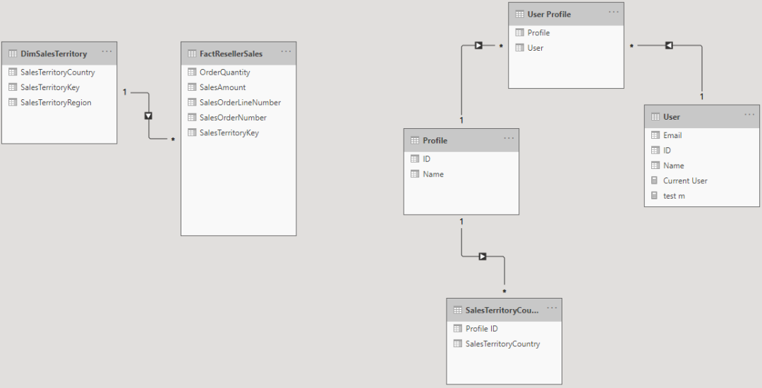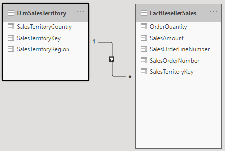这就是为什么我们不应该在SalesTerritoryCountry Except表和DimSalesTerritory表之间创建关系,这也是此模式的不同部分。