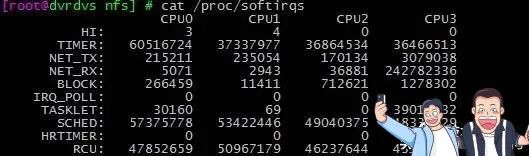 · 注意同一种软中断在不同 CPU 上的分布情况,也就是同一行内容。